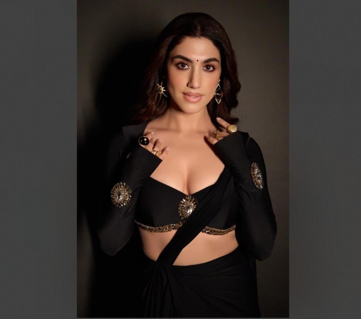 Once again, Delbar Arya proves that she is a true fashion icon, effortlessly setting new style goals for her fans and fashion enthusiasts alike. Her bold black saree look is the ultimate definition of high-end glamour — a dazzling example of confidence, sophistication, and allure.